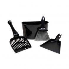- Incluye una pala, una escoba de mano, un recogedor, y un recipiente de almacenamiento.