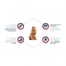 - Condroitina, glucosamina y un nivel óptimo de proteínas para ayudar a preservar el cartílago de las articulaciones y la masa muscular.